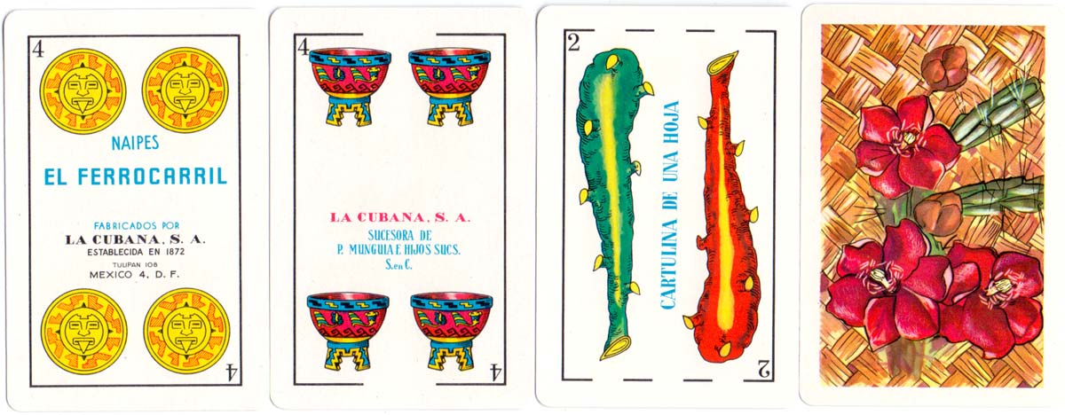 Above: Naipe El Ferrocarril by La Cubana S.A., Mexico, c.2000. 40 cards in box. Reverse: cactus flowers.