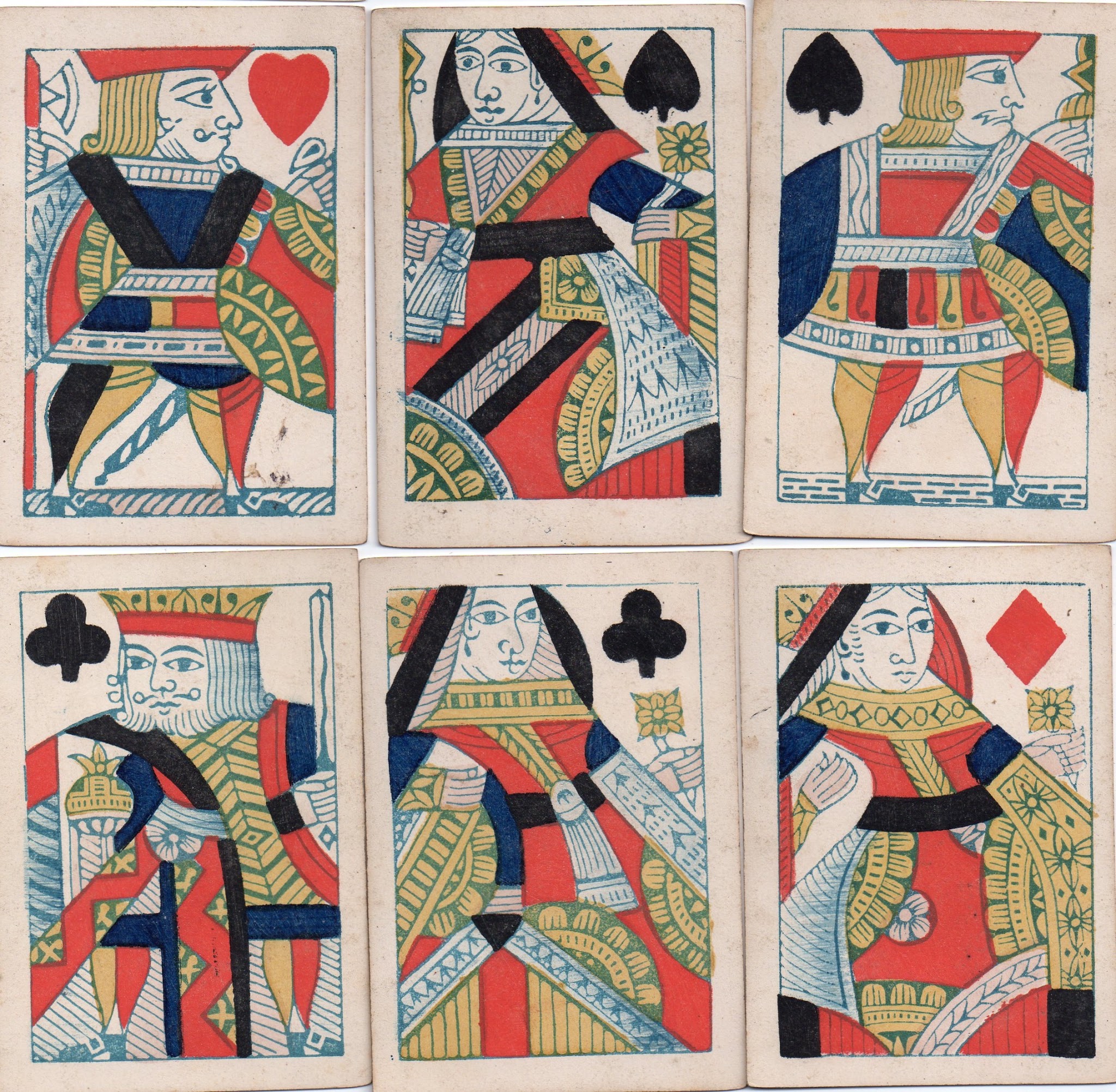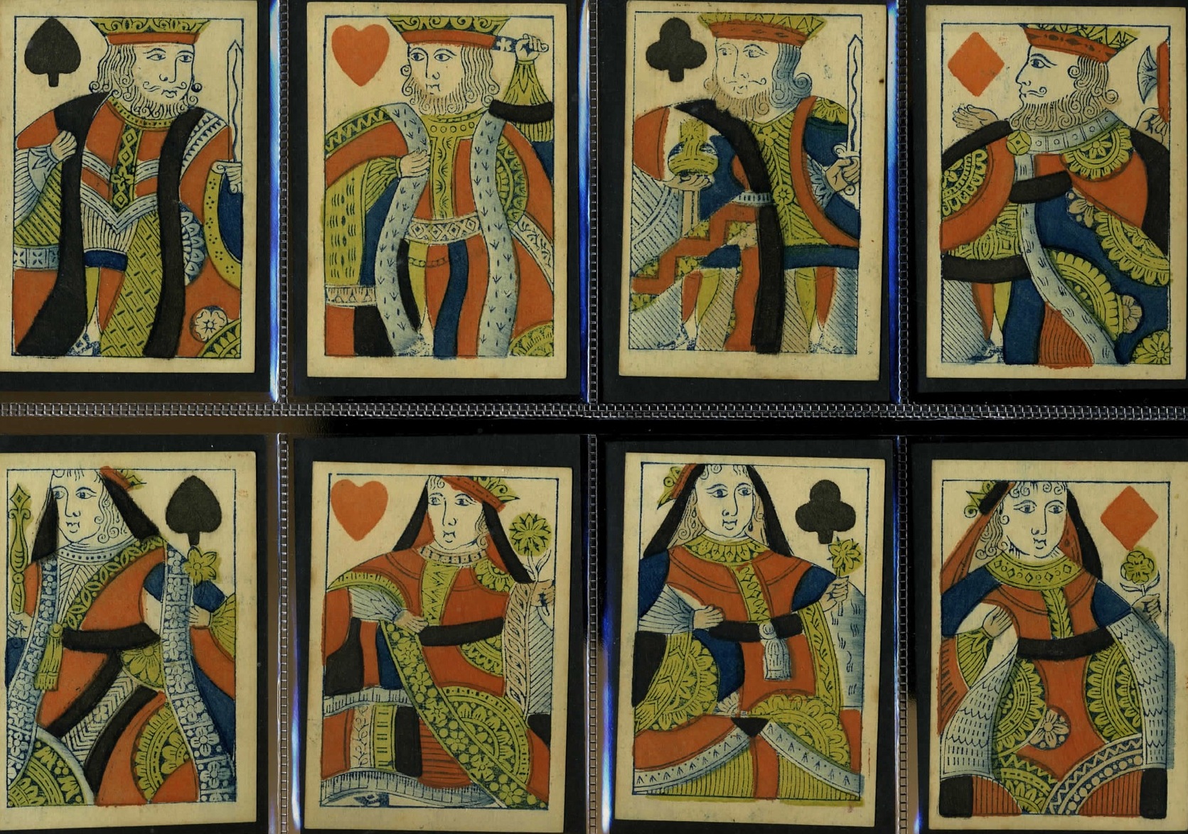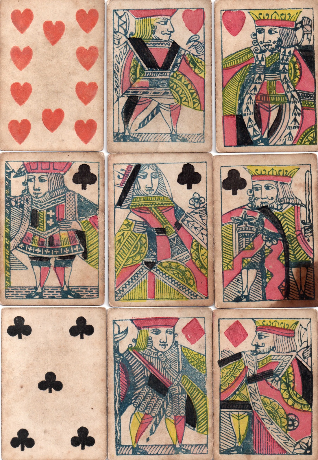 Woodblock and stencil playing cards, produced by Reynolds & Sons c.1830-1850.