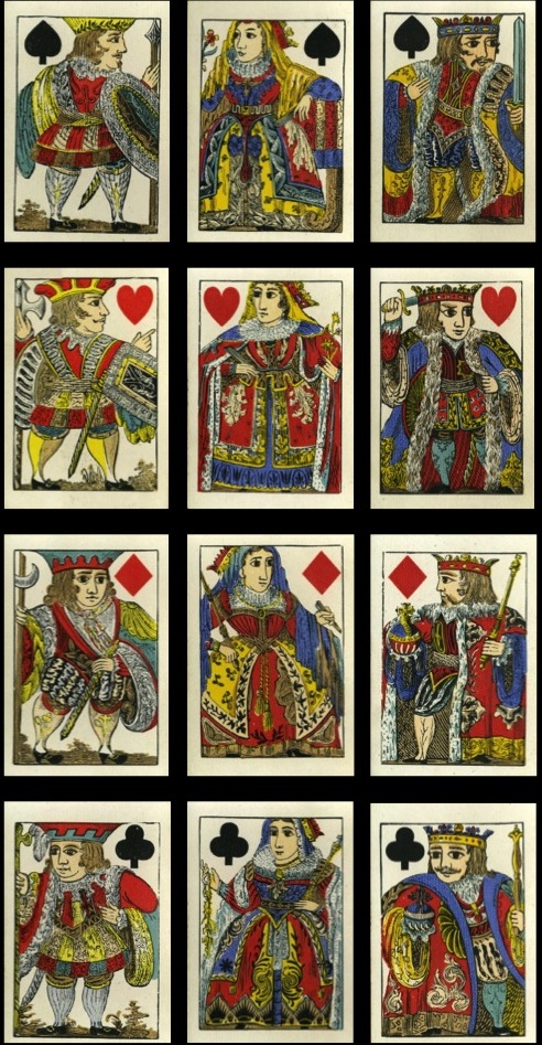 Most of his cards are of this type, but he also produced a non-standard pack called Imperial and redrew his standard courts in a less stylized way - see page 19►