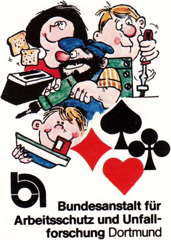 Health & Safety cartoon deck made specially for Bundesanstalt für Arbeitsschutz und Unfallforschung (‘Federal Institute for Occupational Safety and Accident Research’), Dortmund, 1978. See the Box►