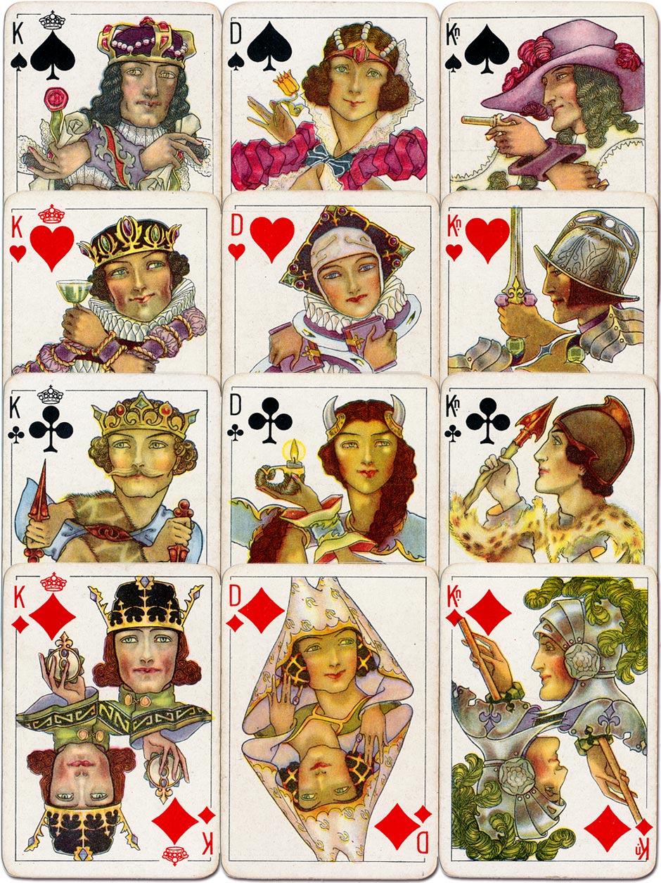 Above: “Warburg Luxus Bridgekort” designed by Barbara MacDonald and printed by Universal Playing Card Co. Ltd in c.1930. The back is a generic design used in other standard packs. Images courtesy Barney Townshend.
