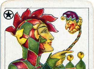 The Aces are decorated with the pip in a central circle and two different figures at each end of the...