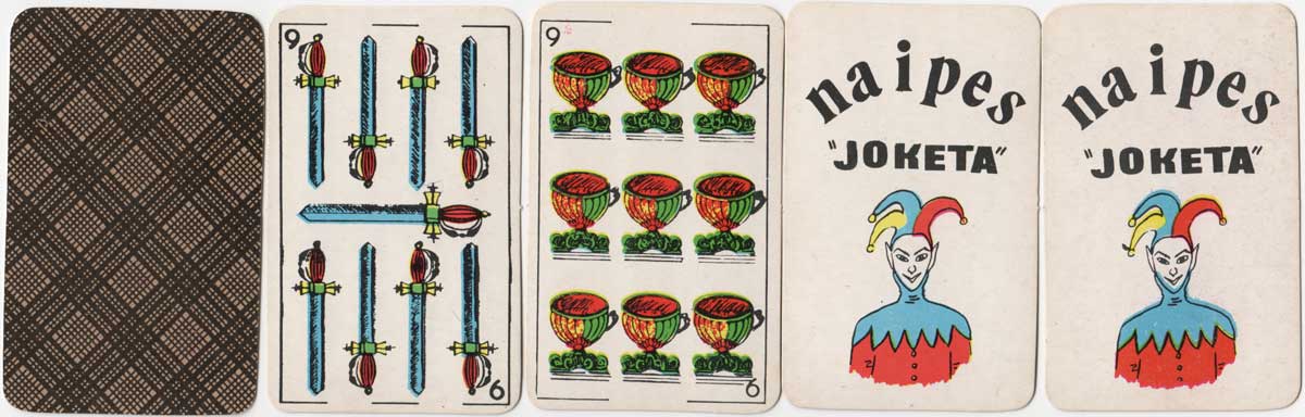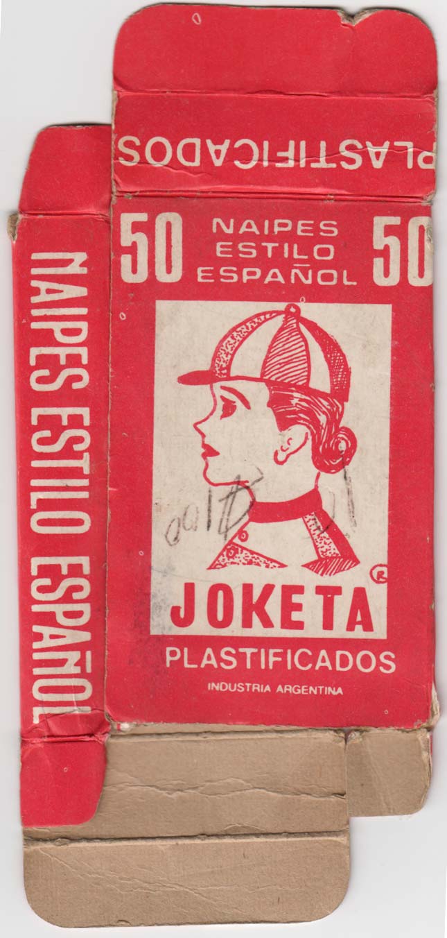 Above: “Naipes Joketa” by an anonymous manufacturer, Argentina, c.1975. 48 cards + 2 jokers in Box.