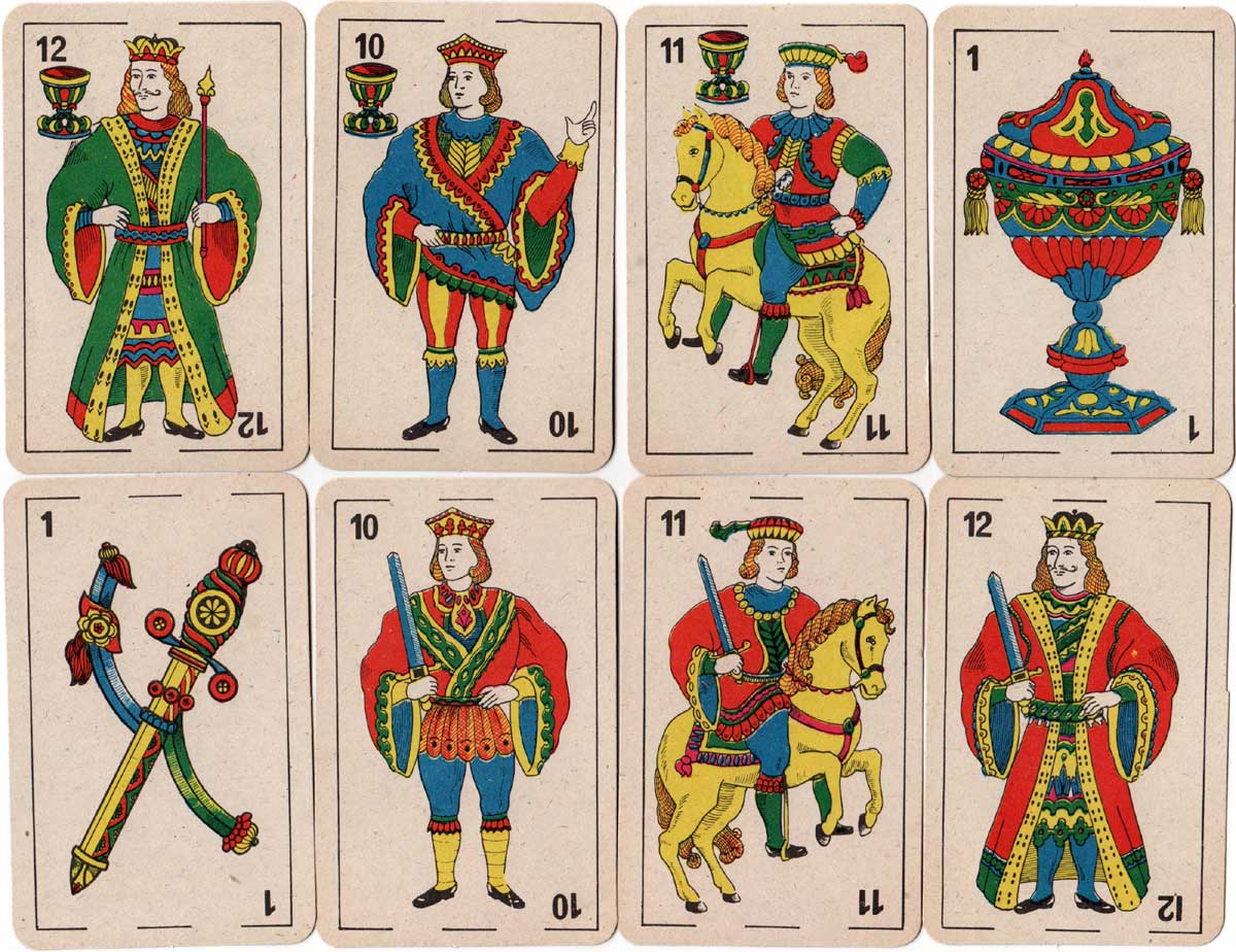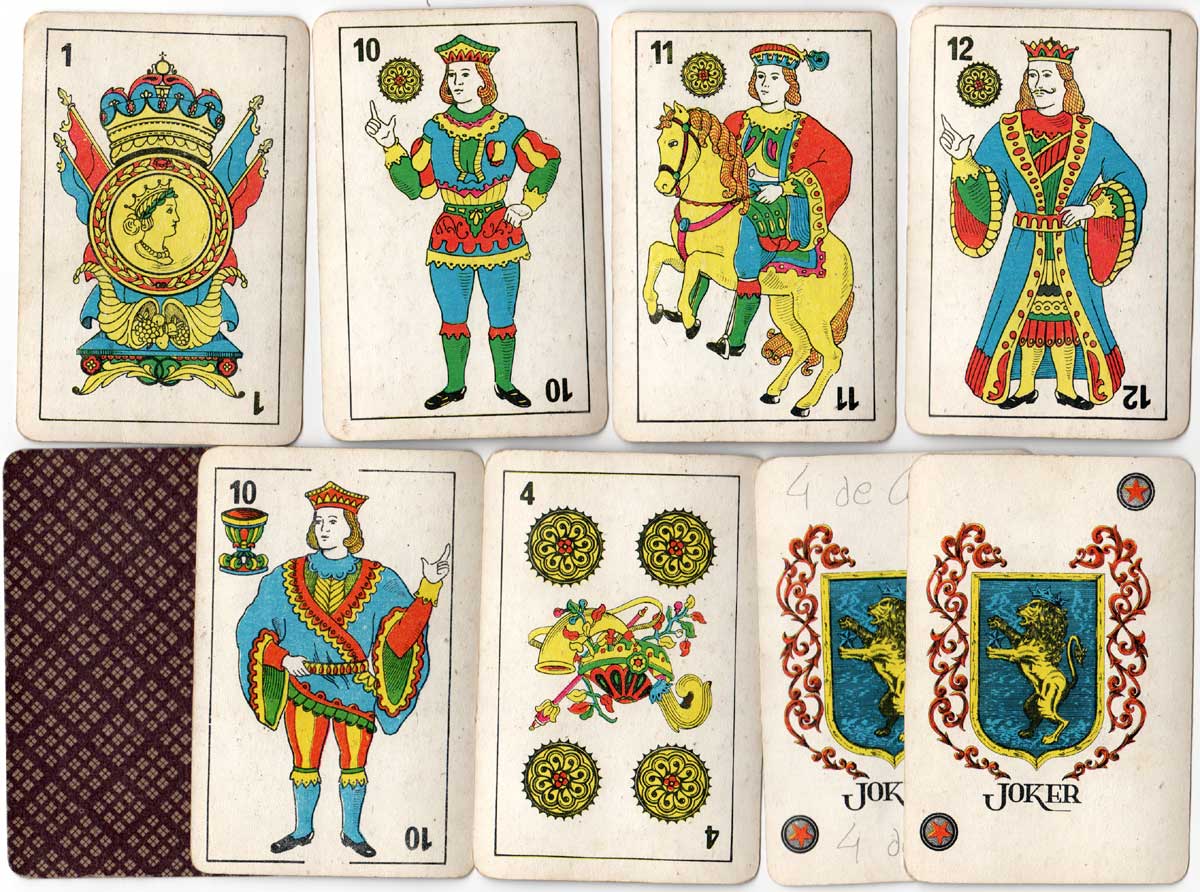 Further editions using the same court cards and ace of coins exist, but with different jokers, publishers and brand names. The precise dates of the various editions are not known so we are not sure which is earlier.