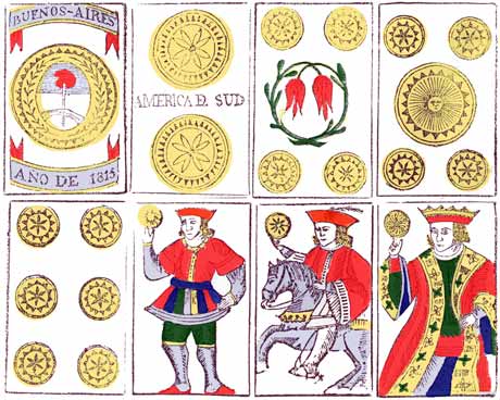 Playing cards believed to have been designed in 1815 by the Chilean immigrant Manuel José Gandarillas in Buenos Aires and published the following year.