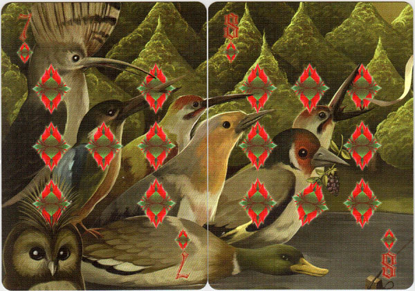 The cards are also in a semi-transformational style, which is in itself an additional challenge. This means that the pips have been integrated into the compositions, making each card a self-contained picture. An additional point of interest is that the primary restriction with artwork on playing cards, which is the constrained size, has been ingeniously surpassed in this wonderful polyptych tribute to the Flemish master painter.