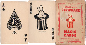Above: Stuthard’s “Stripmark” Magic playing cards, Hudson Industries Pty Ltd c.1950 or 1960. There is also a Stuthard Svengali deck.