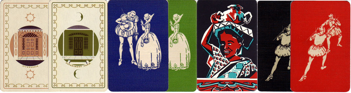 Above: many early designs came in at least 4, and often more, colour versions. “Canasta” decks were a popular Hudson line, and there are a lot of back designs throughout the series.