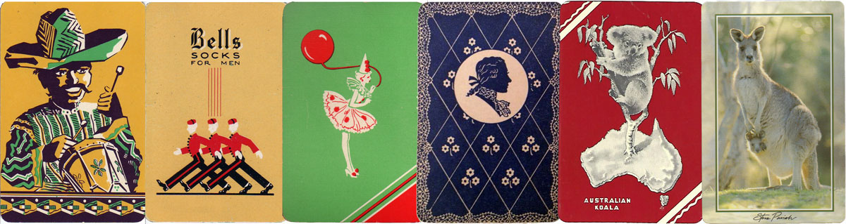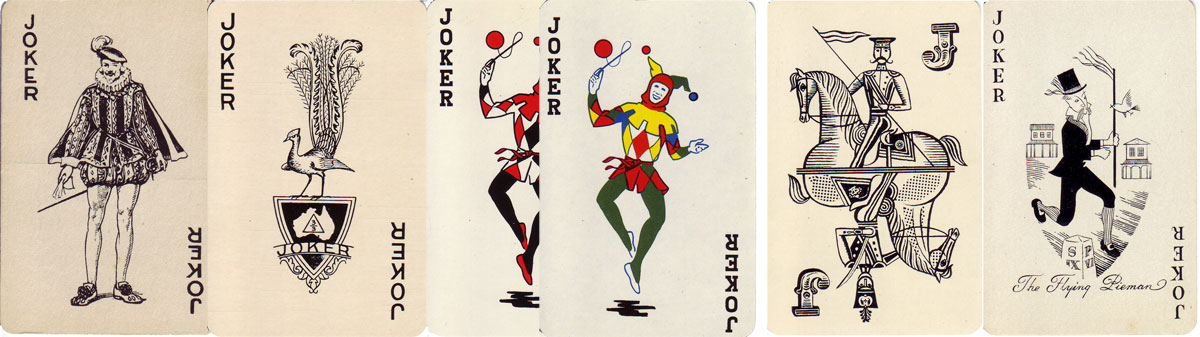 Above: Jokers, from 1930s to 1960s. See also special “Canasta” Jokers→