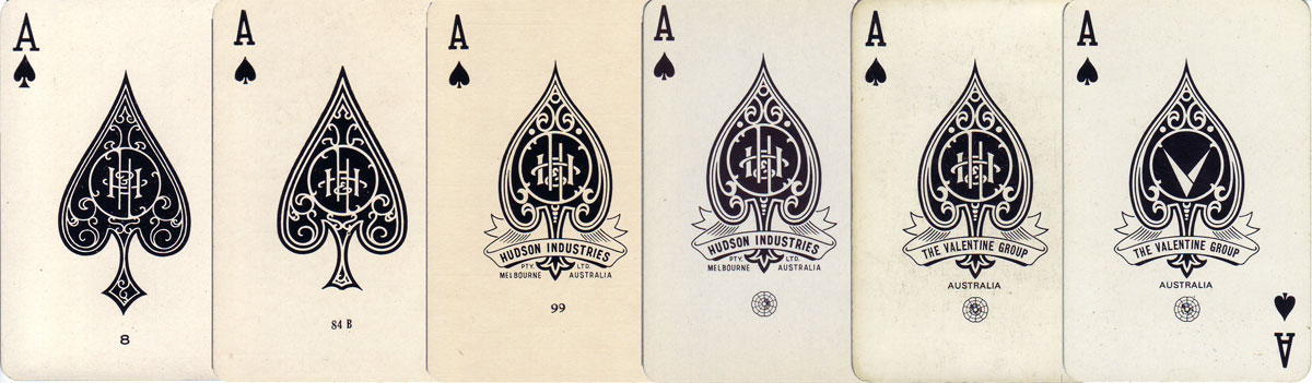 Hudson Industries Pty Ltd of Carlton in Victoria was first registered as a printing company in 1920. In the 1940s they registered their own distinctive ace of spades and joker.