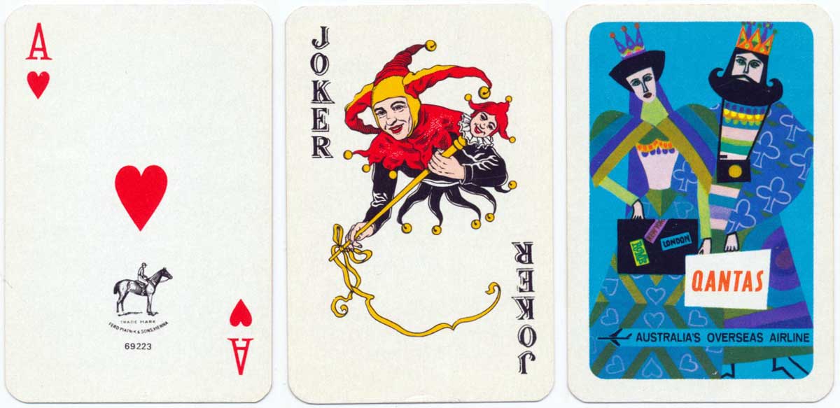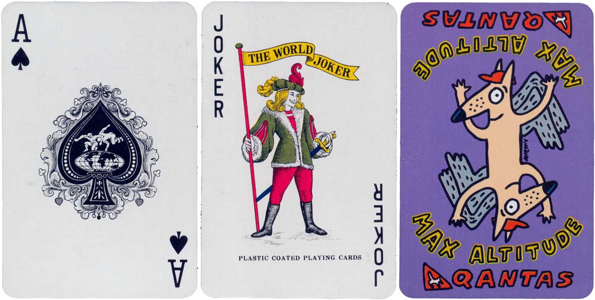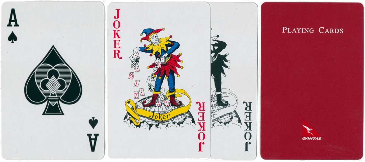 Above: promotional deck for Qantas Airline featuring a special joker, made in Belgium by Carta Mundi.