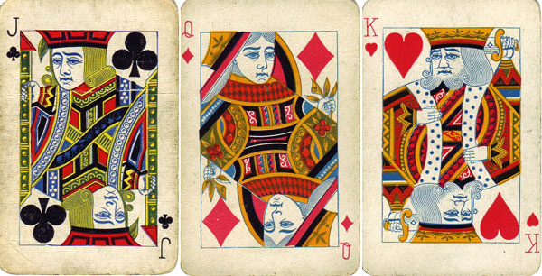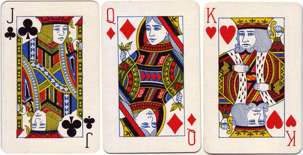 Above: court cards from after 1932. These later courts are a turned redrawing of the earlier wide ones, preserving a sense of tradition.