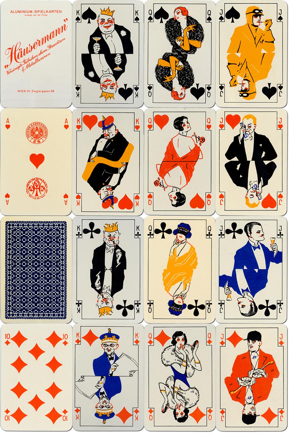 Aluminium playing cards manufactured by Häusermann United Chemical and Metal Engraving Co., Vienna, c.1925