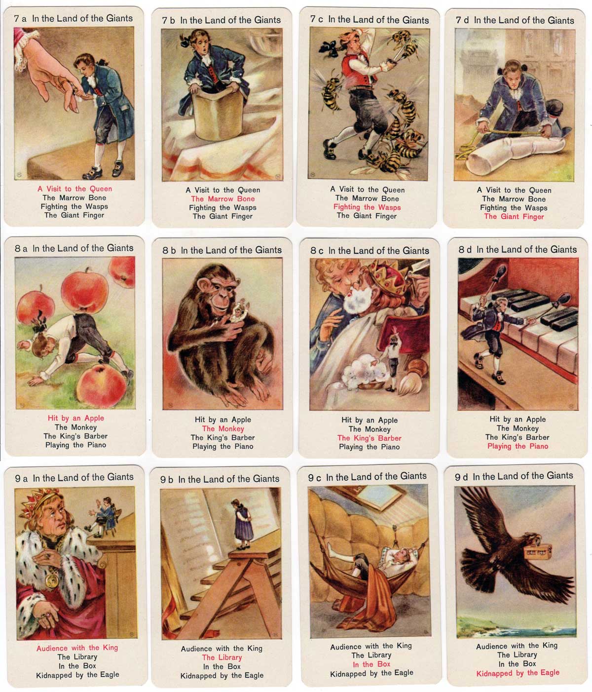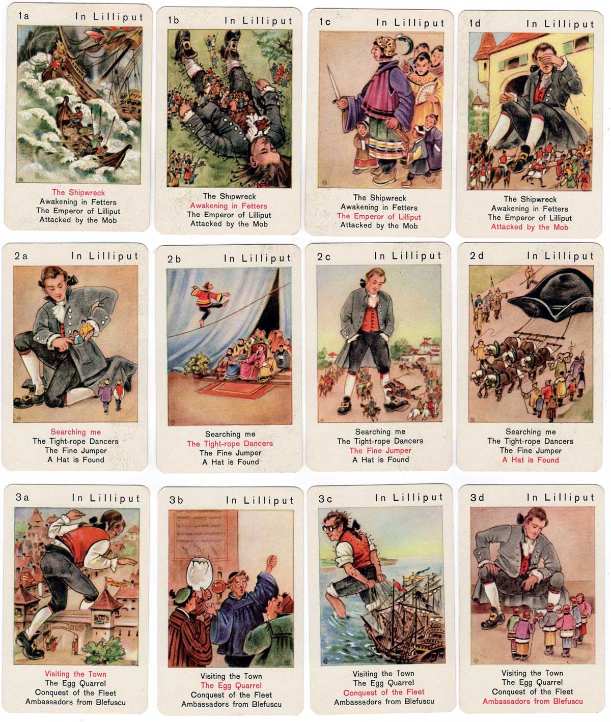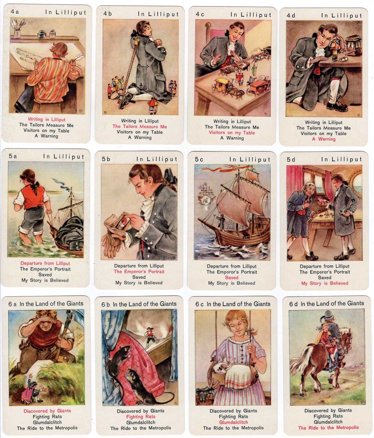 Gulliver's Travels is a set of 36 cards comprising nine families of four cards each telling the story of Gulliver's Travels.
