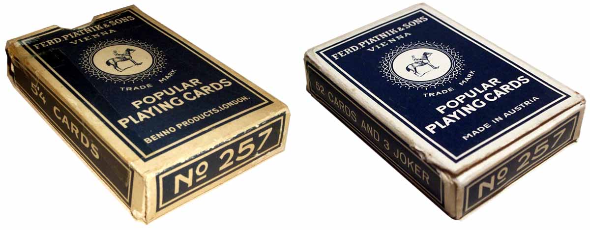 Above: boxes from two slightly different editions of Piatnik’s “Popular Playing Cards” No.257.