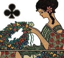 Intended to attract donations on behalf of the Imperial Royal Austrian Military Widows’ and Orphans’ Fund, established in 1914, this elegant and refined deck was designed by Nellie Stern, a member of the Wiener Werkstatte (the Vienna Workshop, a community of visual artists which flourished 1903–1932, famous for it's Art Deco designs). The cards display beautiful subtle colours and intricate detail. The deck was printed by Ferdinand Piatnik & Söhne, Vienna in 1916 and reprinted in 1981 by A.S.S.