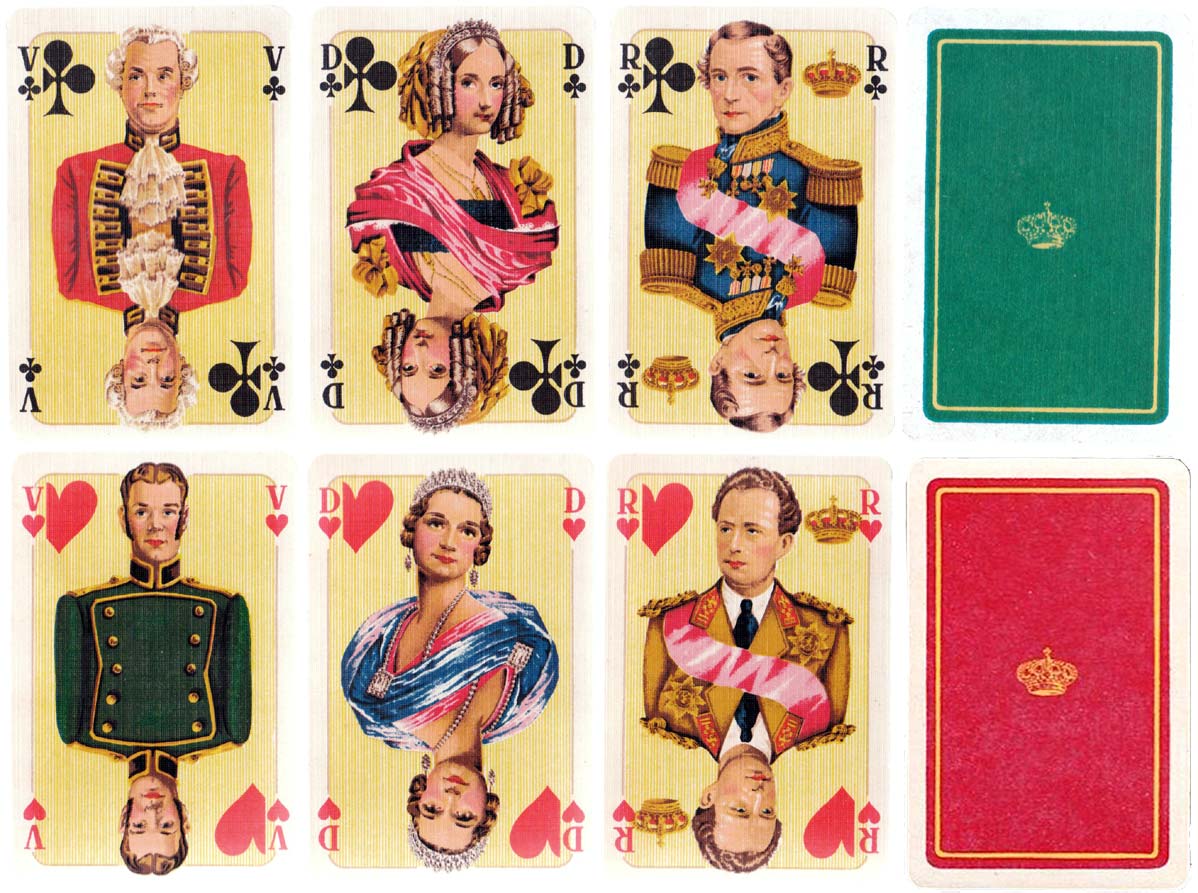 Above: Dynastie Royale de Belgique by Mesmaekers, 1934. 52 cards + blank card in box. Gilded corners.