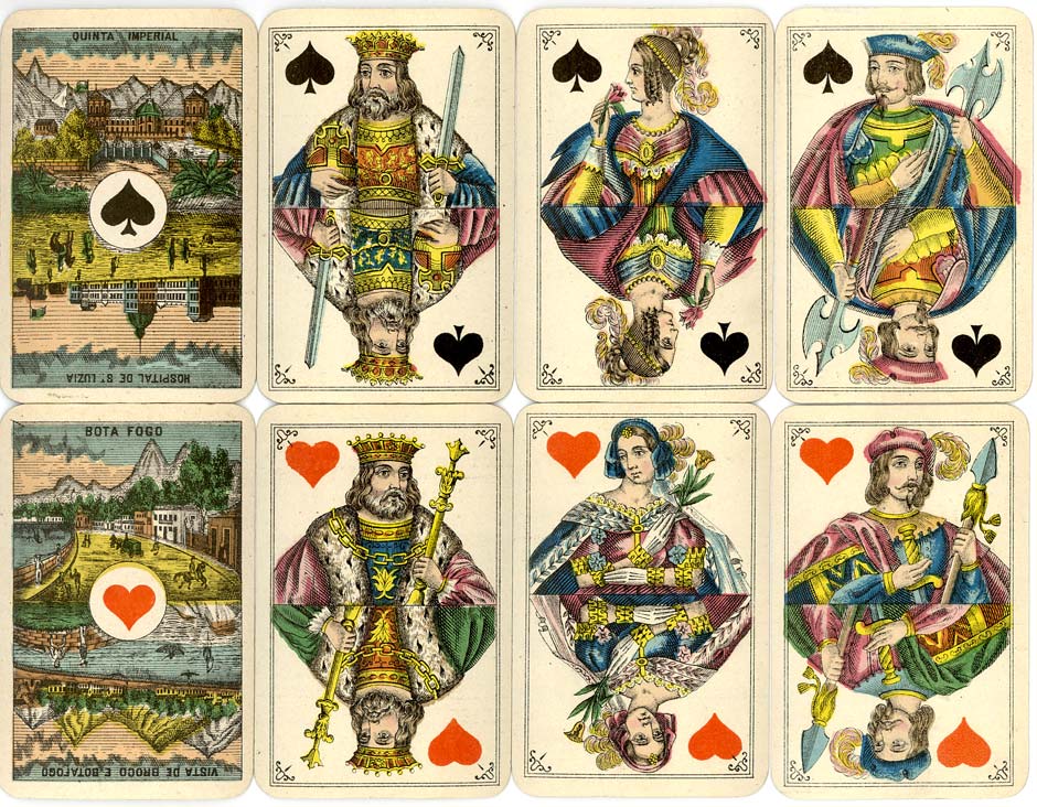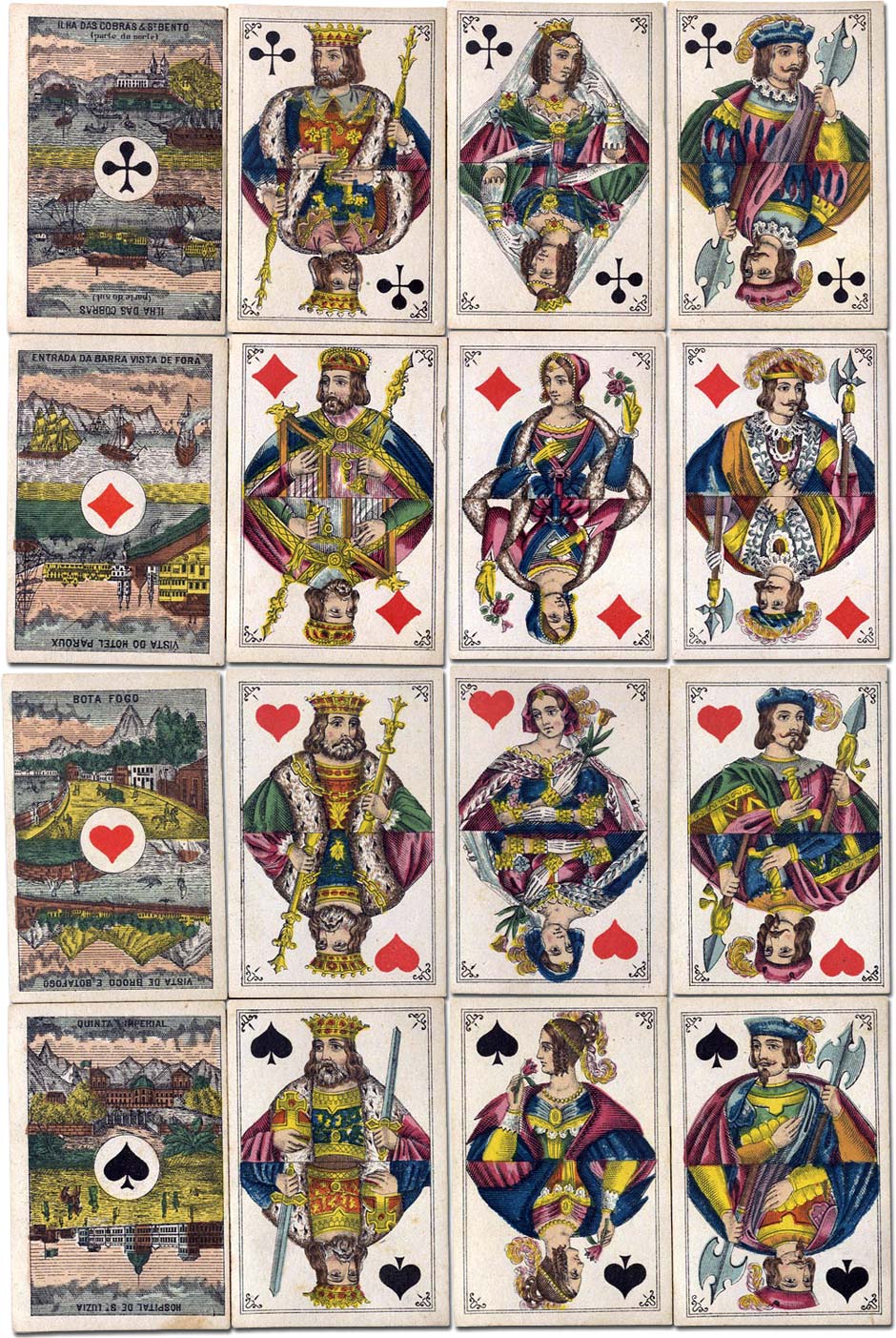 Above: Bongoût pattern playing cards with special scenic Aces for Brazil manufactured by A. Van Genechten, 1870. Stencil-coloured lithography, 32 cards. Image courtesy Barney Townshend. See another example→