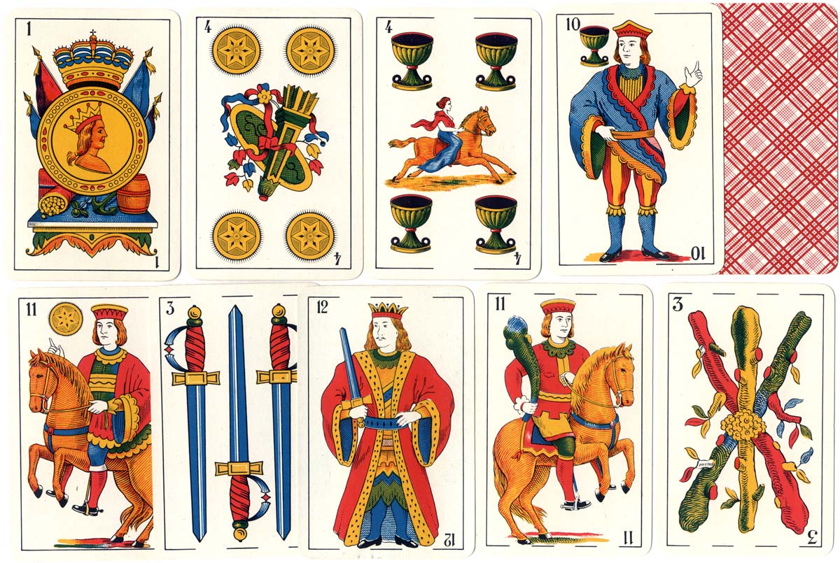 Above: new Spanish-suited playing cards designed by Gertre in 1993, 48 cards, published by SOIMCA. The designs were not well received by card players.