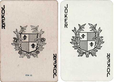 Chinese versions are often easily spotted by the poor quality printing, paper, and the custom of producing one joker card in colour and another in monochrome or even just not coloured black and white, as this Arrco inspired Chinese pair illustrate.