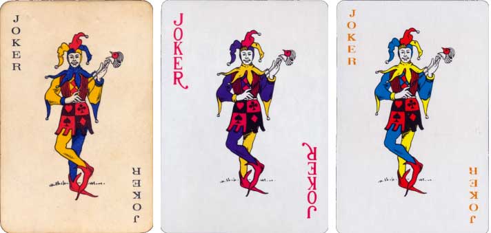 Above: US playing card company standing jester, 'Tiger' brand copy and another anonymous copy.