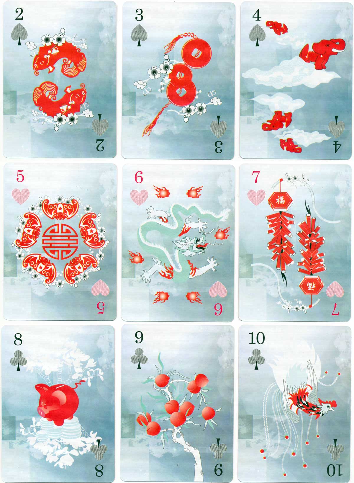 All the cards are illustrated with cultural symbols and lucky charms, including the “Laughing Buddha” whose likeness features on the bottle. The same design is replicated across each suit, with just the indices varying. Share the good fortune!