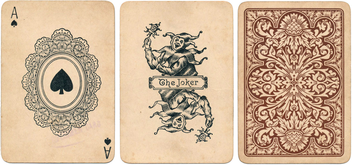 More examples of playing cards by the Empire Card Co., the subsidiary of Thomas de la Rue & Co (active c.1888-1915). It's not clear whether the doily ace predated the Empire Card Co.