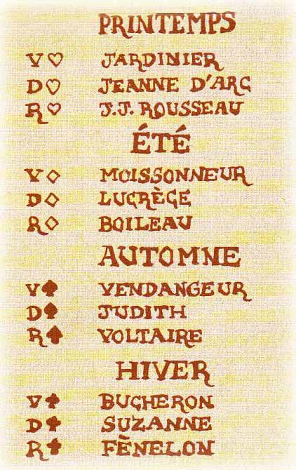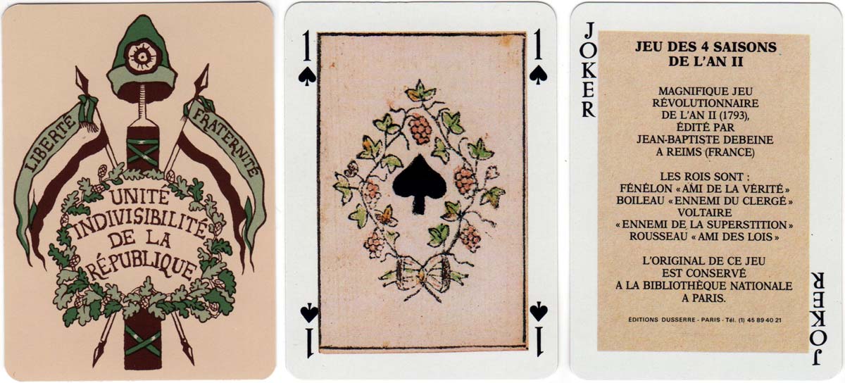 “Jeu des Quatre Saisons de l’An II” facsimile of French Revolution deck originally published by J. B. Debeine (Reims) 1793.