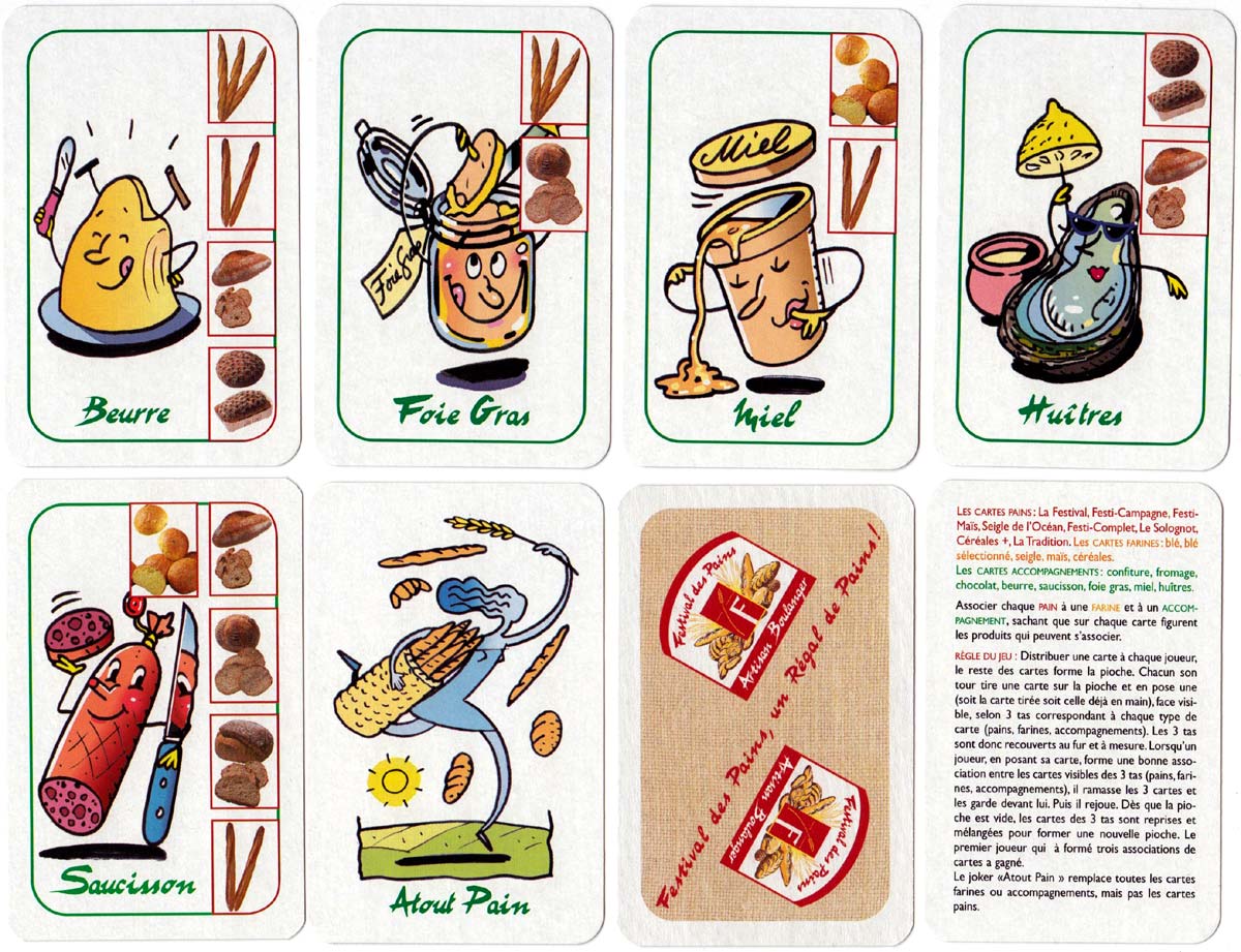 Above: Festival des Pains (Bread Festival) Artisan Boulanger, c.2003. 54 cards: 8 bread, 5 grain, 8 accompaniments & 2 jokers plus rules card, all of these cards are supplied in varying quantities to make up the full pack.