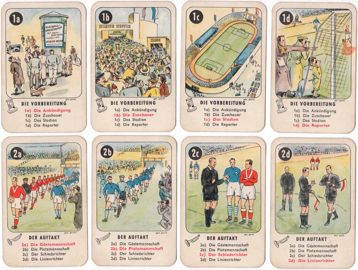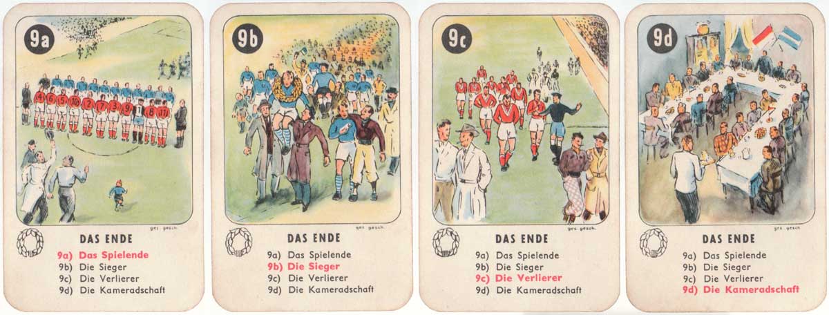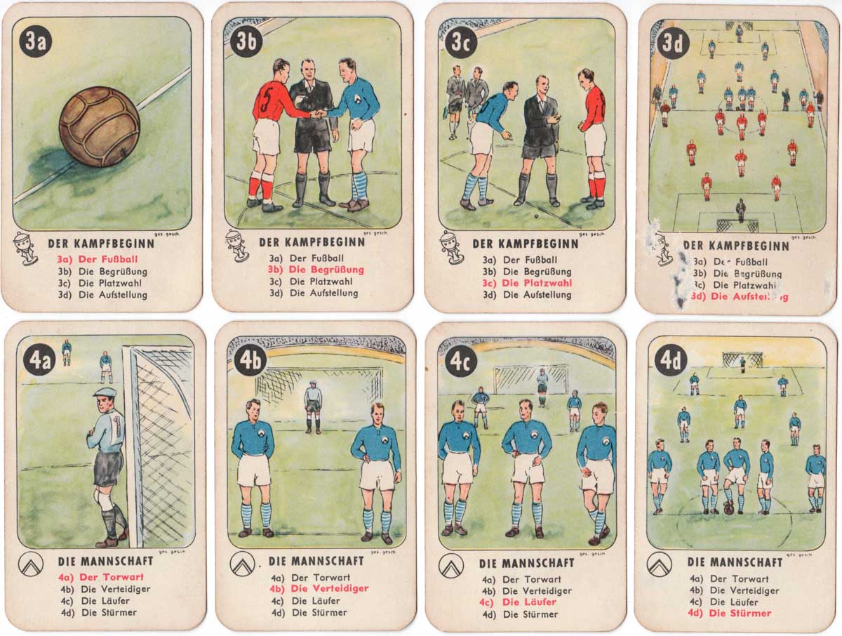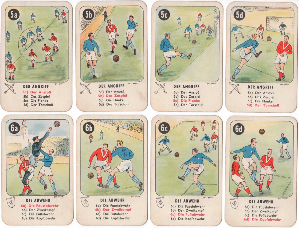 Above: Fussball Quartett by Bielefelder Spielkarten GmbH, 1950. 36 cards + rules in box.