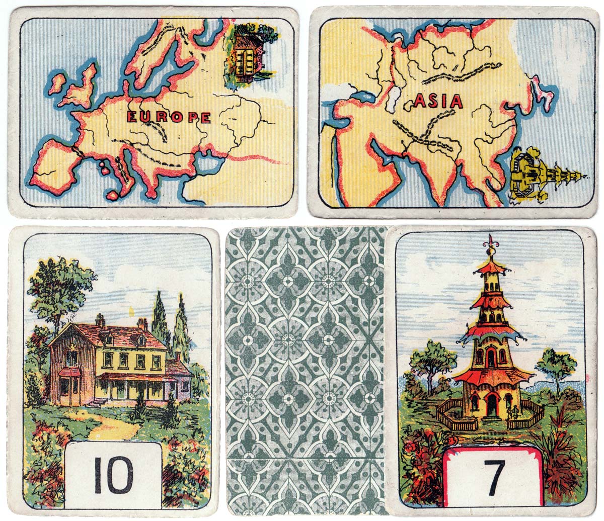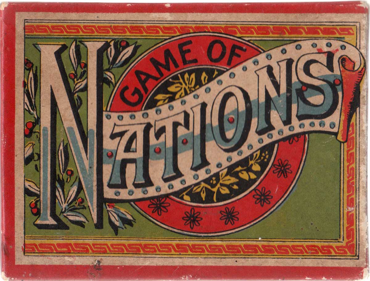 Above: cards from the “Game of Nations” manufactured by McLoughlin Brothers, 1890s.