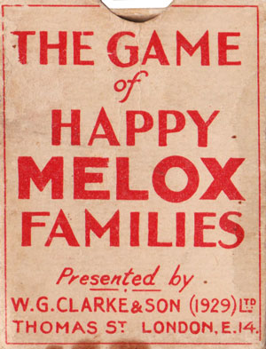 The “Game of Happy Melox Families” was published by G. Clarke & Son of Thomas Street, London, in 1929.