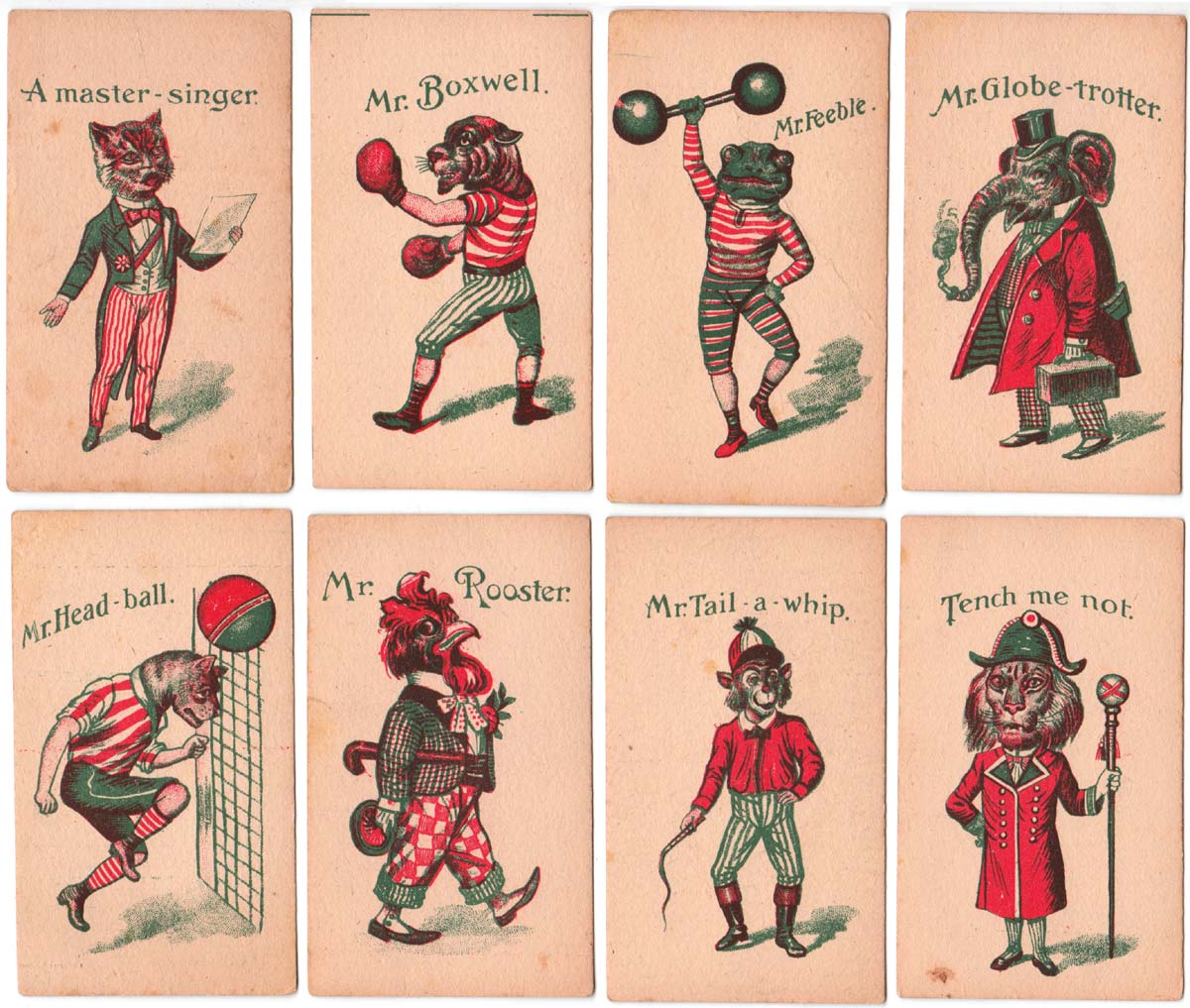 Above: cards from an 'Animal Snap' game printed in red and green, anonymous manufacturer, 36 cards, plain backs more►