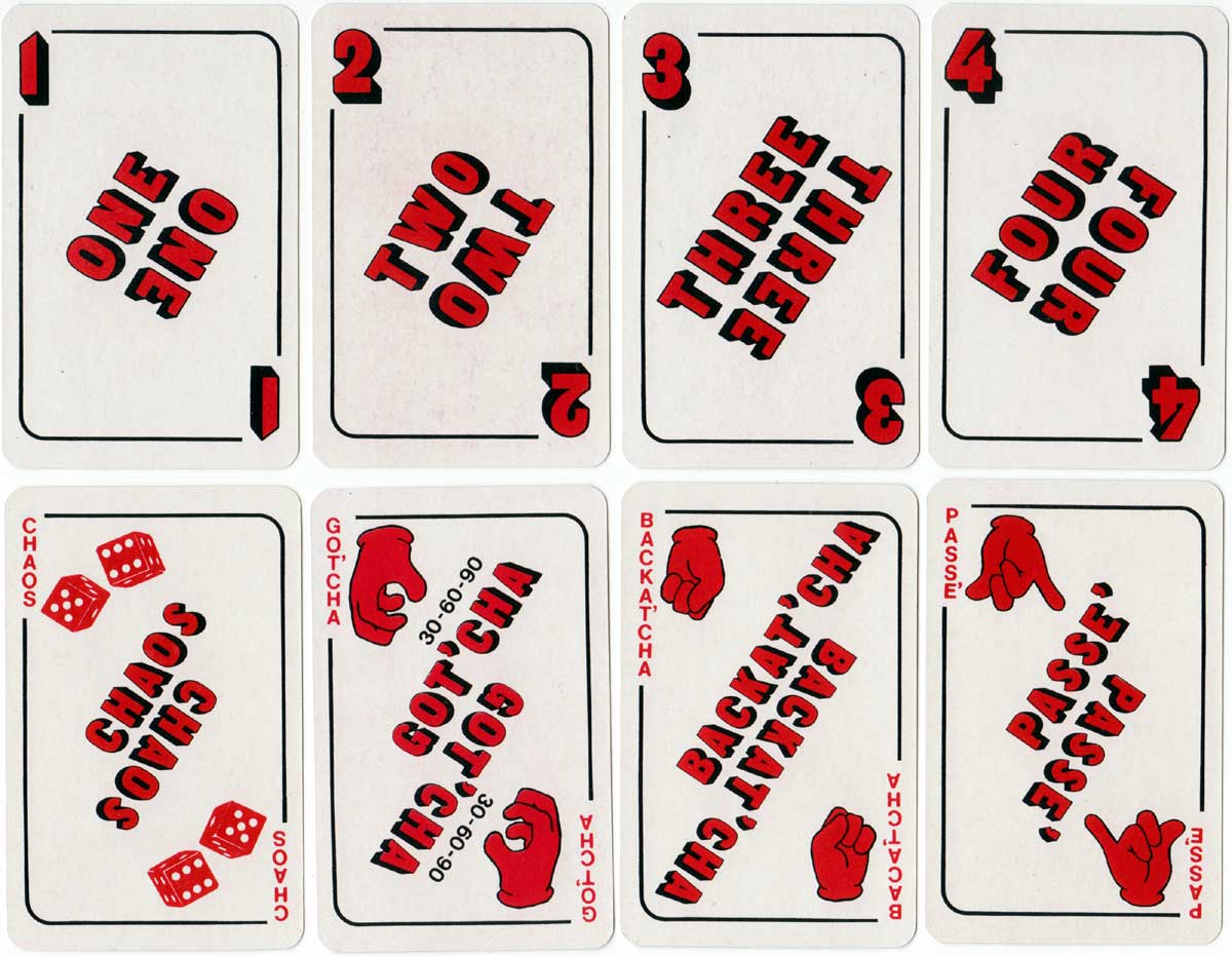 Above: Snafooey card game by Peter Pan Playthings Ltd, Bretton Way, Bretton, Peterborough, PE3 8YA, United Kingdom, 1983. 104 cards + 60 counters + 2 dice + rules leaflet in box.