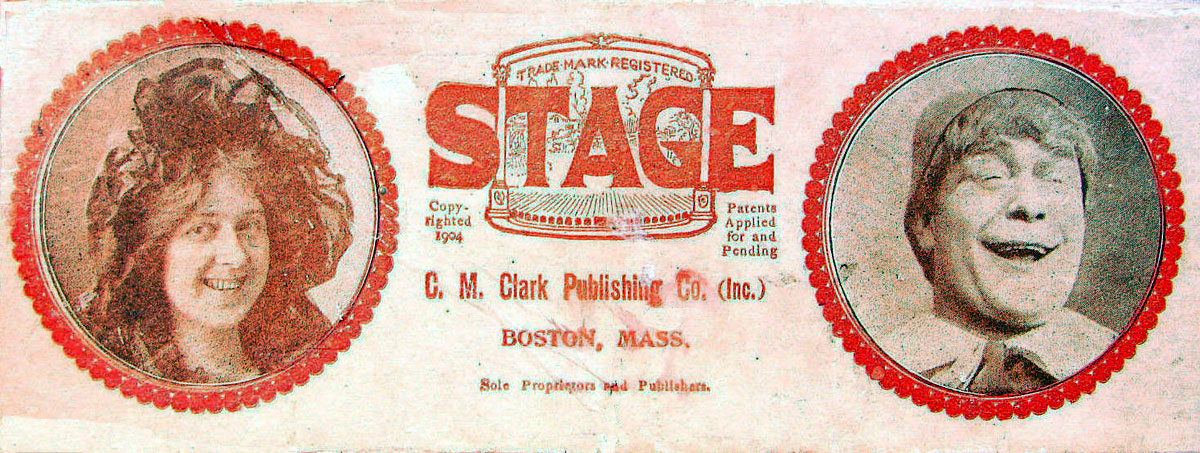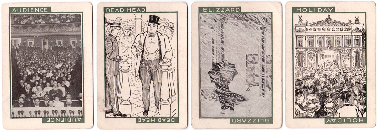 ‘Stage’ novelty card game was published in 1904 by C. M. Clark Publishing Co. Boston, Massachusetts with portraits of popular actors and actresses. Contemporary advertising described the game as the “Newest and Best of all Card Games”, “Learned in a Twinkling” and “Never Forgotten” which today might be equivalent to the excitement of playing pokies. Seven branches of drama are represented: Grand Opera, Tragedy, Drama, Comedy, Comic Opera, Vaudeville and Farce, along with Audience, Holiday, Blizzard and Deadhead cards. The object of the game is to be the first player to fill one of the classes of theatre with the artists that belong there and an audience. C. M. Clark Publishing was in existence until 1912.