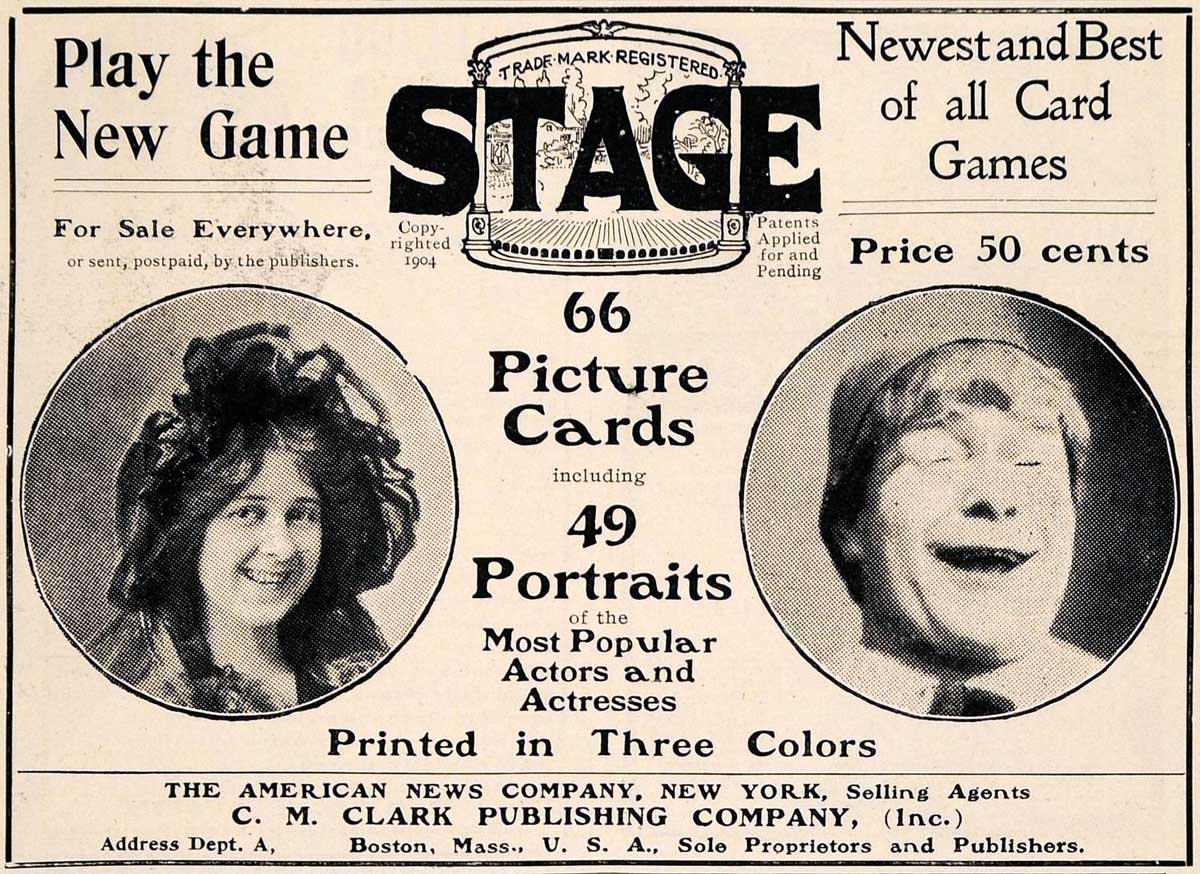 ‘Stage’ card game © 1904 C. M. Clark Publishing Co. Boston, Mass. with portraits of popular actors and actresses.