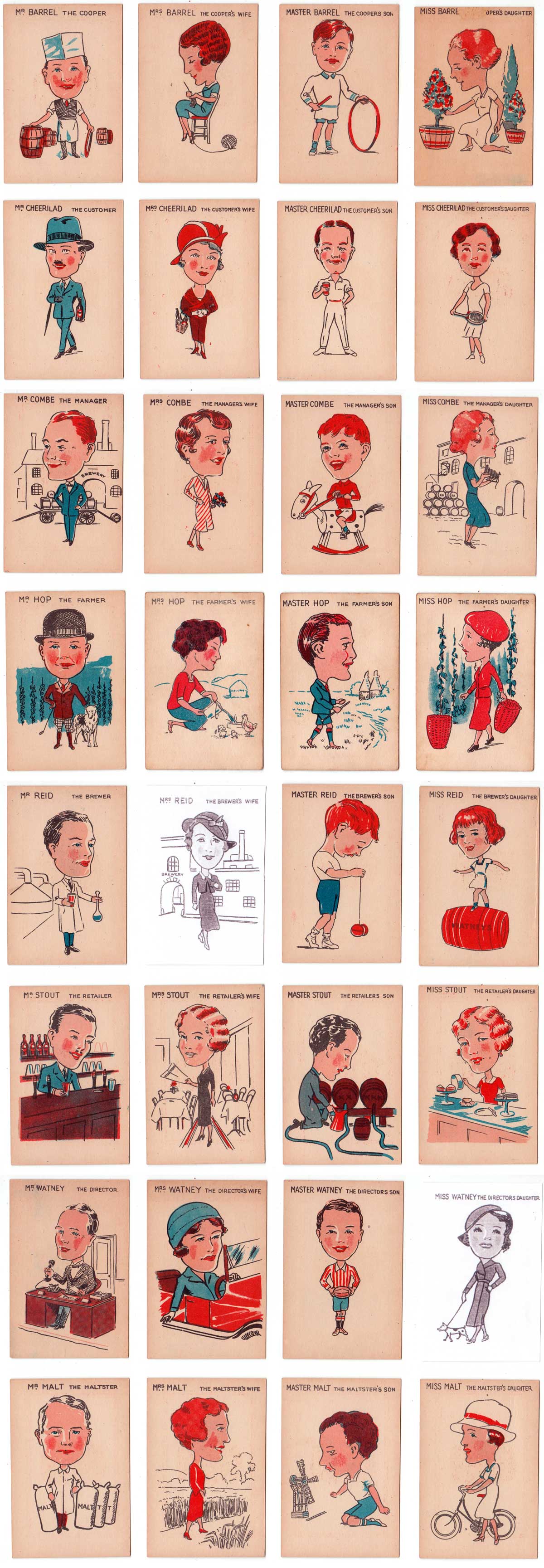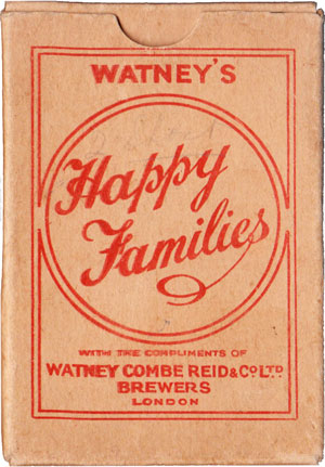 Above: Watney's Happy Families, with the compliments of Watney Coombe Reid & Co Ltd Brewers London, 1930. 32 cards. The rules are printed on the reverse of the box.