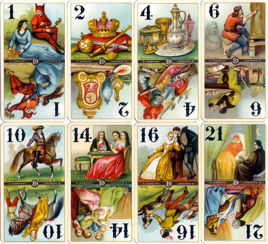 French-suited tarot cards made by B. Dondorf, c.1870.