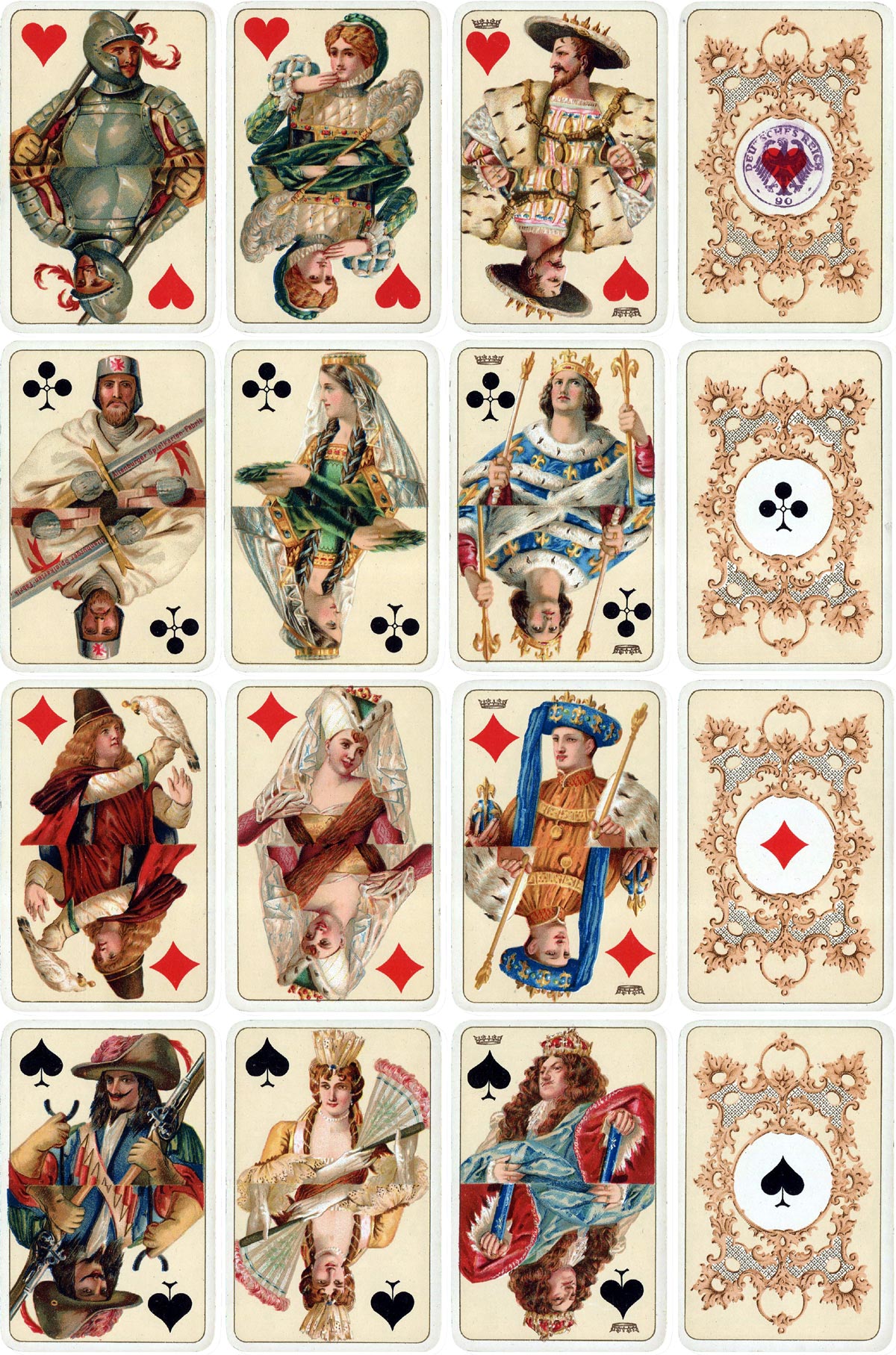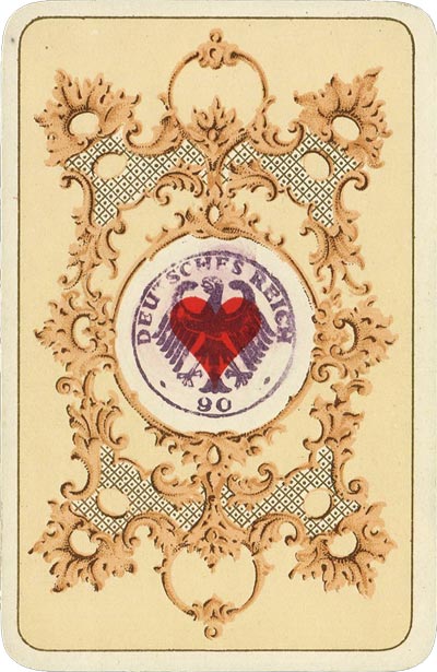 Above: “Kaiserkarte” by Schneider & Co, Altenburg, used exclusively at the Imperial Court in Berlin, first published in 1895-1897. The cards have no indices and an ornate back design. Images and historical notes courtesy Valentin Zadunaisky.