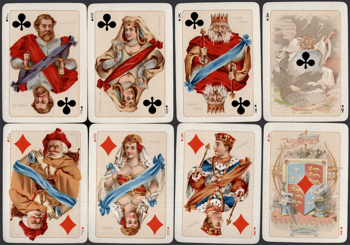 “Historic Shakespeare” playing cards featuring Shakespearean characters by Chas Goodall & Son.