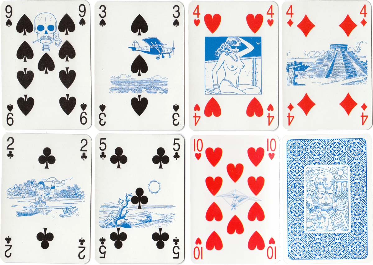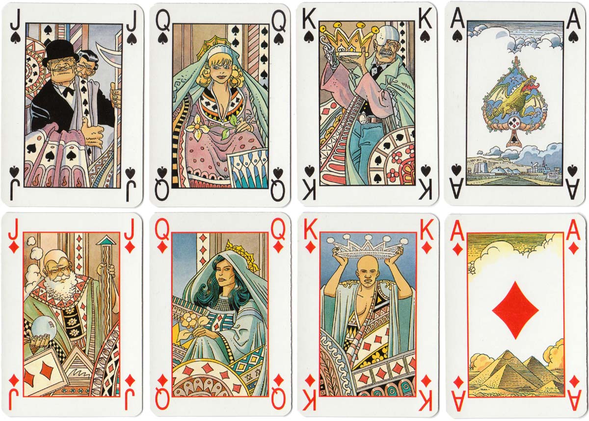 Above: Martin Mystère poker published by Lo Scarabeo, Torino, Italy. 52 cards + 2 jokers + leaflet + extra card in box, c.1995. The leaflet explains that 666 numbered packs were printed on a particular kind of board and came in boxes made of a similar, slightly heavier board. The whole edition must have been much greater.