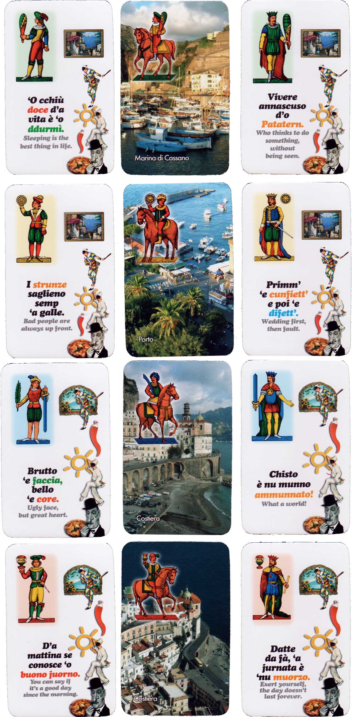 Souvenir of Sorrento Neapolitan style playing cards with picturesque sights and ancient proverbial sayings, published by Carte Da Gioco Muoio, Naples, c.2010. See the Box►