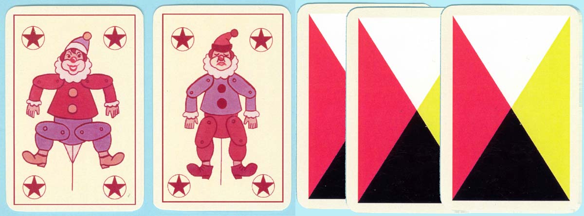 “Four Races” playing cards were designed by Latvian artist Vilnis Rasa in 1989, published by Jānis Mētra as “Latvijas Pasjansa” (Latvian Patience) and printed in Lithuania by Albinas Borisevicius at his “Orija” colour digital printing works in 2007. Re-printed as “Nensijas” in 2015. The suits are hearts, spades, clubs and diamonds, total 32 cards + 2 jokers + 2 extra cards.