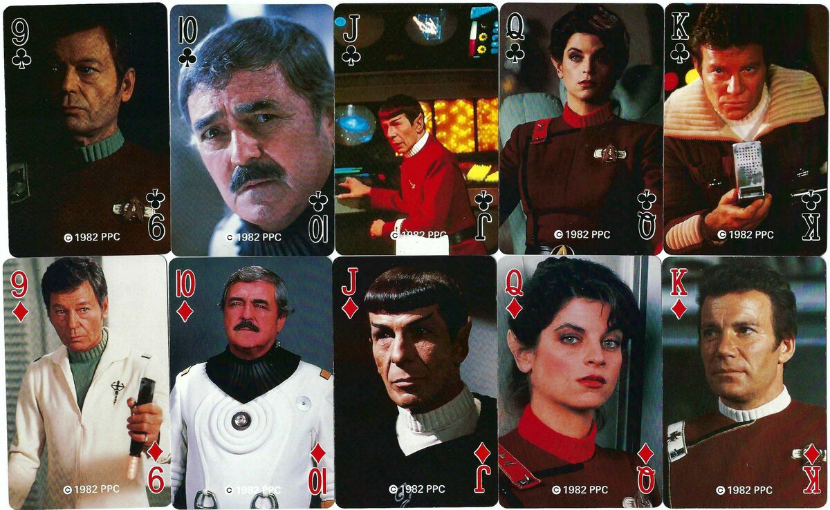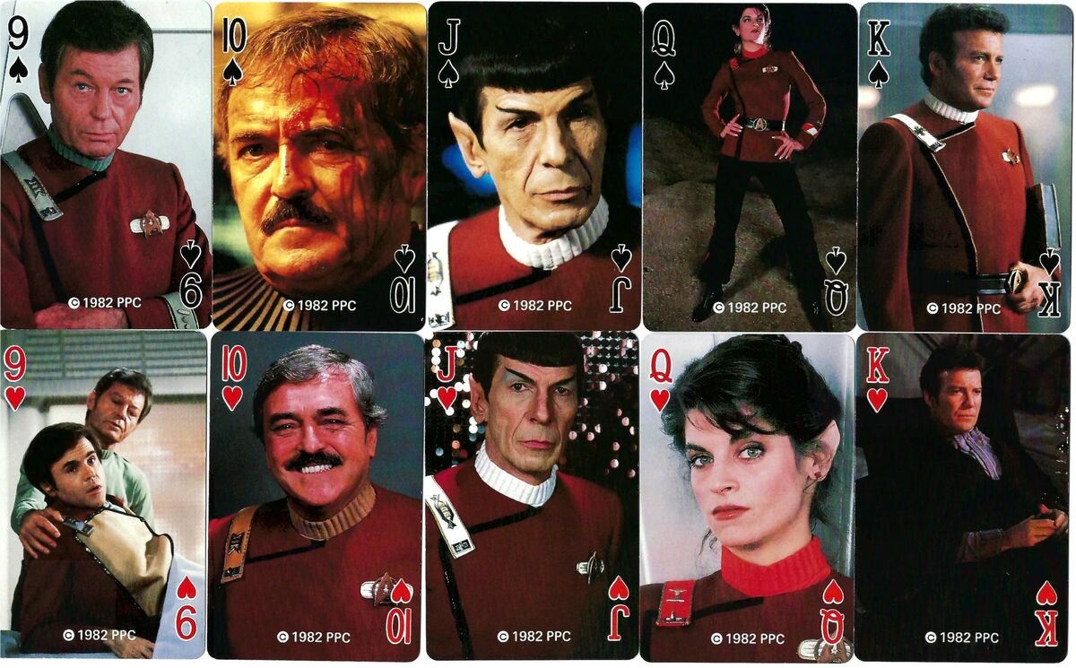 Surprisingly, Mr Scott features on the Tens, followed by Dr McCoy on nines, and Chekov on Eights. And two other members of the original crew, Sula and Uhura, only feature on random cards.