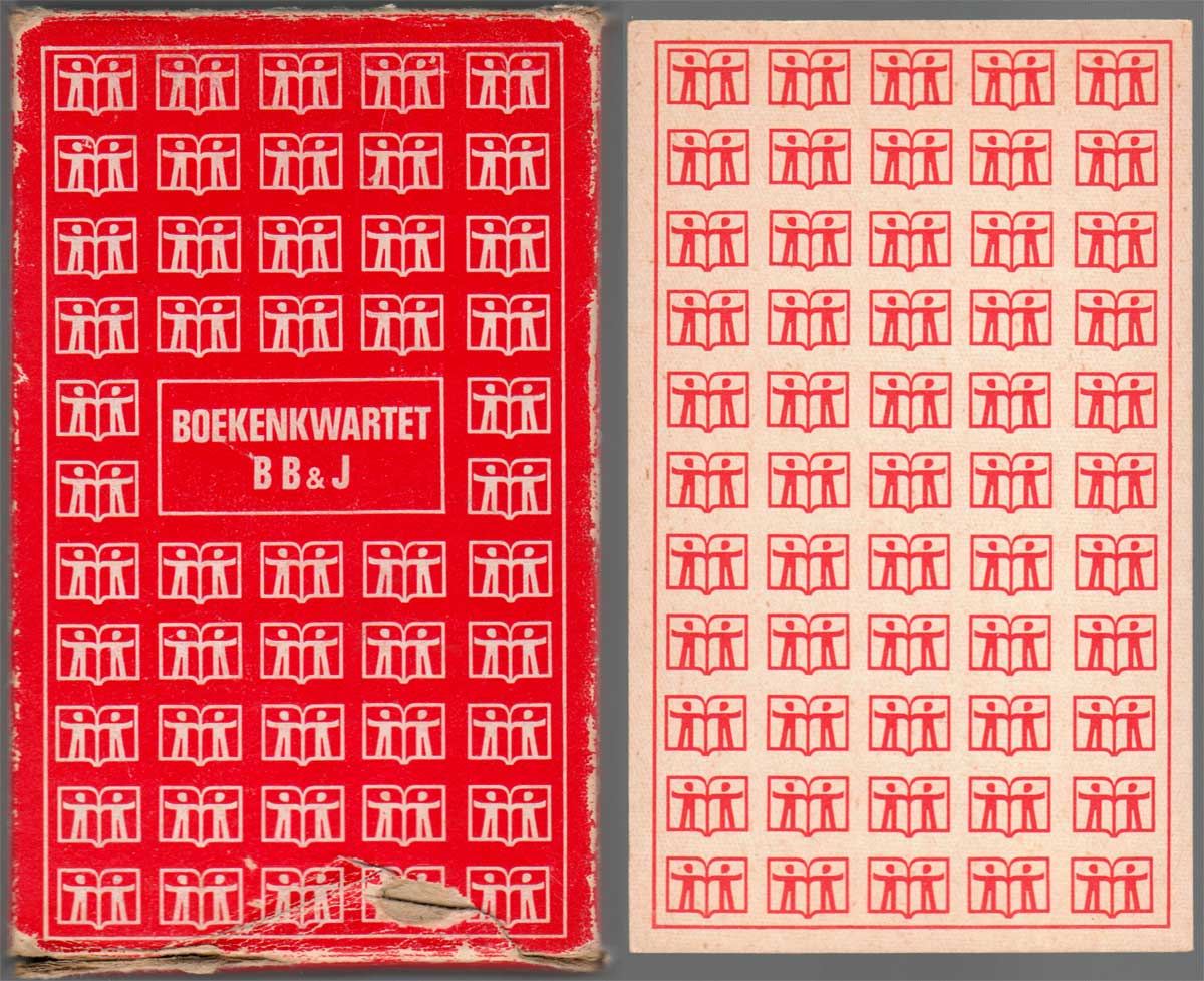 Above: the box and back design from Boekenkwartet, published by Bureau Boek en Jeugd (Book & Youth Bureau), The Hague, 1970s. 48 cards + rules in box. The names of the book illustrators are not credited.