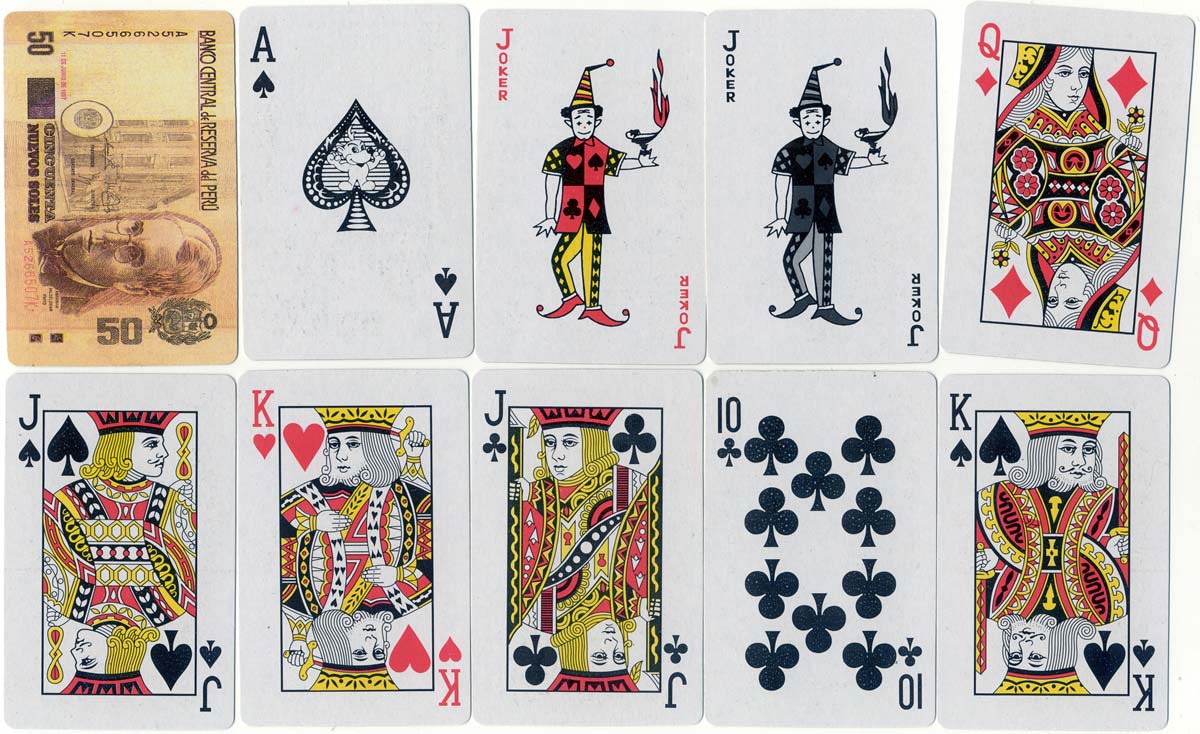 Above: Chinese cards imported into Peru with image of banknote on the reverse, anonymous manufacturer.