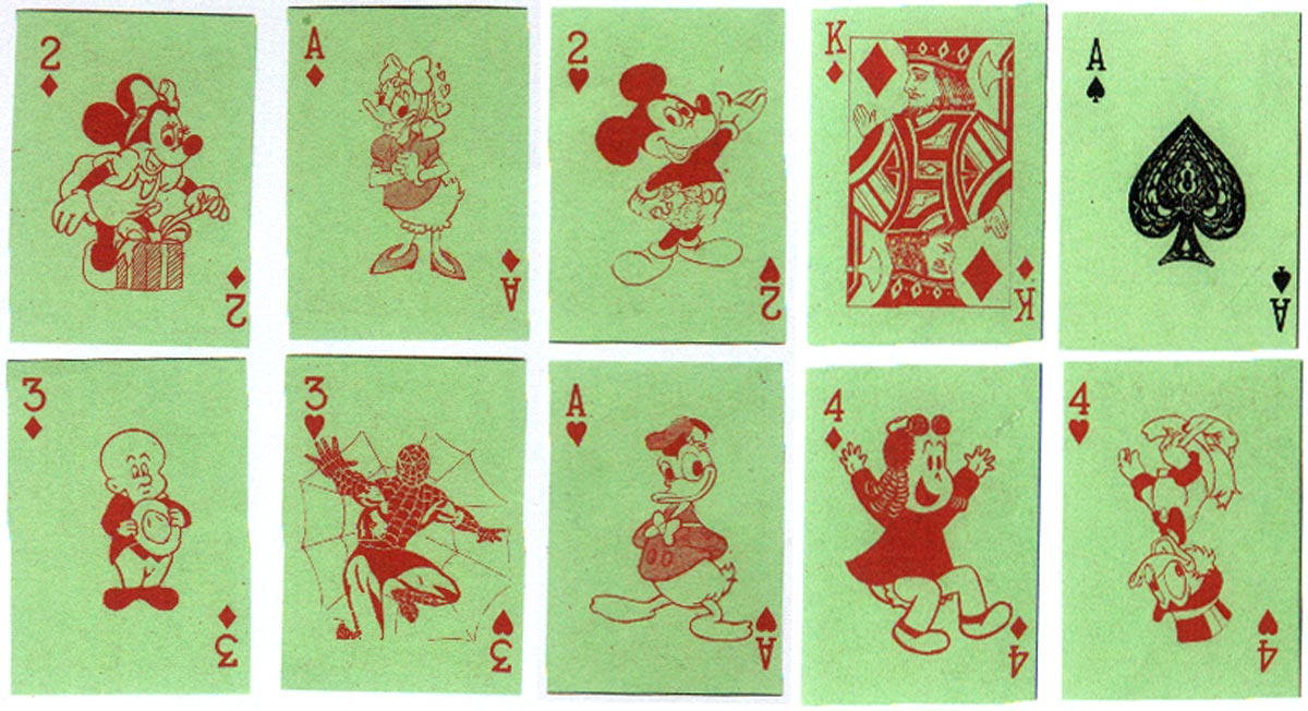 Anonymous children's Walt Disney characters playing cards. Images courtesy Enrique García. See also: Walt Disney cards for Gó Buona Frutta in Succo, Italy, 1982