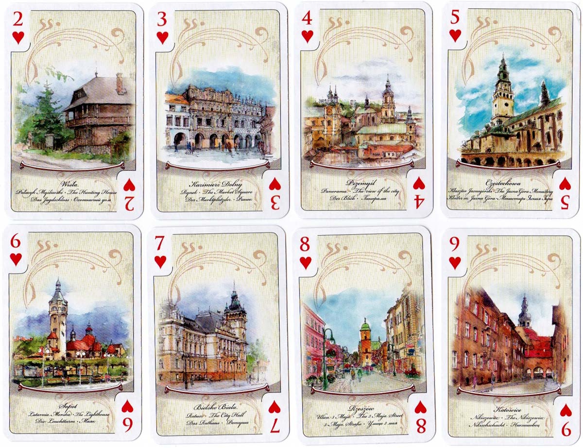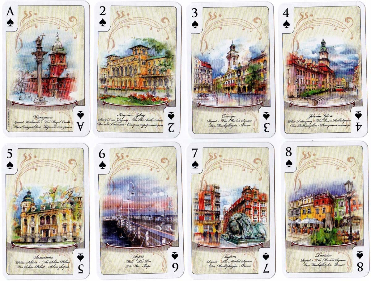 Polska topographical playing cards with watercolour artwork by Katarzyna Tomala & additional design by Krzysztof Korzeniak, 2011.