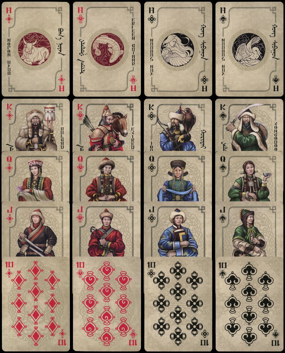 Playing cards depicting paintings of Traditional Nomadic Life of Mongolia.
