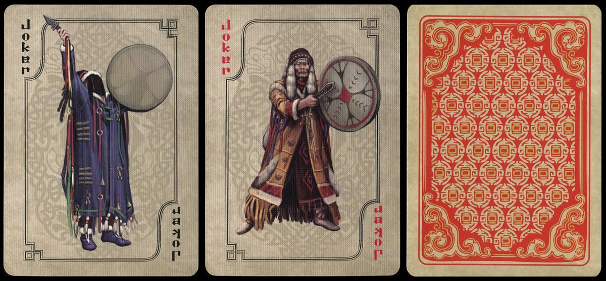 Above: “Eastern” playing cards dedicated to ethnic Buryat culture published by the Russian Playing Card Society and printed by Nage Cards (St. Petersburg), 2015.